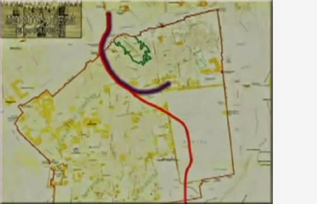 Verdadera Vía Dolorosa desde la Torre Antonia siguiendo paralela al Valle de Tiropia (que hoy es una planicie lleno de escombros) representado en color violeta, parte del mismo camino que mil años antes había recorrido Abrahám y su hijo Isaac